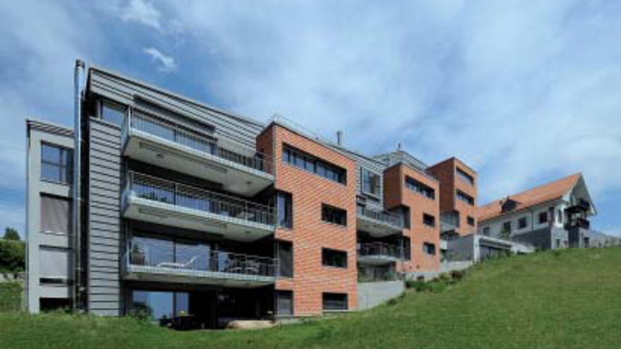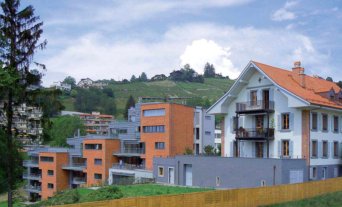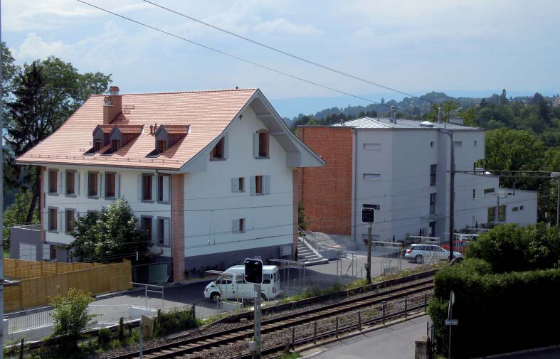 Longtemps laissé à l’abandon, ce site intéressant mais difficile, a connu diverses tribulations jusqu’à la prise en main d’un projet conduit en collaboration avec le Service des Monuments et Sites de l’Etat. En précisant les critères liés à la protection du patrimoine, le nouveau projet, incluant le déplacement de la route qui passait au milieu du terrain aux frais des promoteurs, concrétise la solution acceptable trouvée pour satisfaire aux oppositions. En définitive, le projet comprend deux unités d’habitations, l’une étant la maison de Maître rénovée avec quatre appartements et l’autre, une construction nouvelle comprenant douze logements avec garage intérieur de dix-neuf places. L’ensemble permet non seulement de valoriser le site au bénéfice de ses habitants ou utilisateurs, mais aussi d’améliorer la qualité du transit et la sécurité sur la route de la Bernadaz, par ailleurs reprofilée et réaménagée dans sa section inférieure pour sus-citer une limitation du trafic.